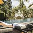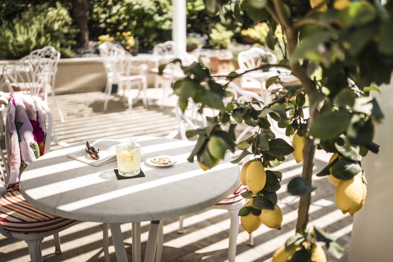 Suite im Erdgeschoss mit privater Terrasse, separatem Wohn- und Schlafbereich mit Südbalkon, Wasserkocher mit Kräutertees, kleiner Bücherecke, Sonnenliege und -schirm, Sitzgelegenheit, SAT-TV, Radio, Safe, Telefon, WLAN, Minibar, Klimaanlage, Badezimmer mit Dusche, Bidet, WC, Haartrockner und Kosmetikspiegel, Wellnesstasche mit Bademantel, Sauna- und Badetüchern sowie Badepantoffeln.